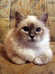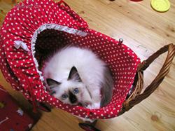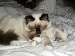 Nastalo velké vybírání. Sárinka měla jasno v tom, že chce bílou kočičku s modrýma očima. Já sama, ještě u rodičů jsem měla siamského kocourka Feryka, ale přestože byl velmi chytrý, byl hodně divoký, hlučný a uškrábaný, takže Siamku jsem zavrhla. Perské kočky jsou příliš introvertní a nebavilo by mne každodenní česání. Takže zbývala britka, ragdoll a birma. Po okukování na výstavách jsme se rozhodli pro poldlouhosrstou kočku. Obvolala jsem asi deset chovatelů ragdolů, a zjistila, že se ragdolové neradi nosí na rukou a vyhovuje jim, když můžou mít svůj klid a pro pomazlení si dojdou až mají náladu.