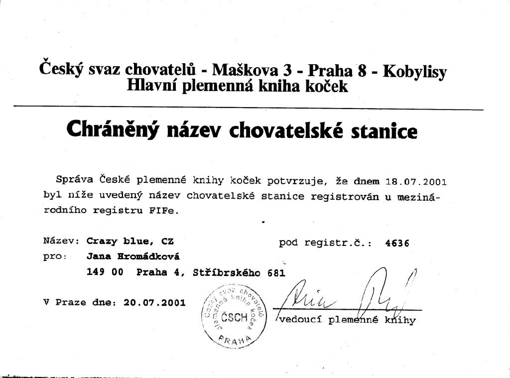 Chovatelská stanice: CRAZYBLUE*CZ
