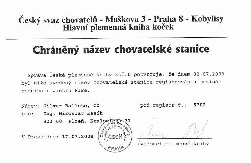 Chovatelská stanice: SILVER BALLETO CZ