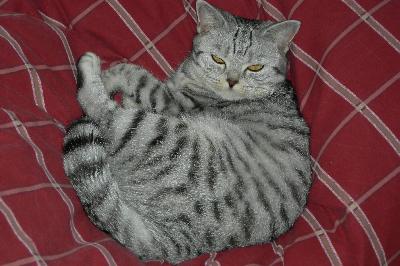 O nás:Tak, jako většina chovatelů i my jsme nezačínali rovnou s kočkami s rodokmenem, ale pomalu jsme se k chovu dostali přes pouliční a domácí Micky a Macíky. Odjakživa se nám kolem domu motalo nějaké mourovaté kotě, které se časem ztratilo nebo si jej nějaký dobrák odnesl domů. Protože jsme to vždy obrečeli, padlo rozhodnutí, že žádný další chlupáč už nebude. Až jednou přišel opravdový krasavec. Tedy, abych byla přesnější, někdo nám ho hodil do okapu. Po složité záchranné akci, jsme žalostně vyhublé koťátko dostali pomocí košíku dolů. Určitě už víte, jak to všechno dopadlo. Kotě tedy kocourka jsme nakrmili, odblešili a pojmenovali. A Vilík nás za to už 14 let miluje. Když přišel čas zařídit si svou domácnost, bylo jasné, že bez kočky být nemůže. Kocour Vilda zůstal u mé maminky a já si vybrala nádhernou stříbrnou britušku. Můj přítel byl tedy ze začátku proti. Jeho zásadní stanovisko; Fuj, smradlavá kočka! Kočka mi nesmí do bytu! bylo zlomeno hned první noc. Kočičí miminko, které jsme z výchovných důvodů nechali na chodbě, hrozně moc plakalo a tak po páníčkovo přímluvě skončilo u nás v posteli. Jak jinak! A od té doby je to přítelovo miláček, kterého mu samozřejmě moc přeju!